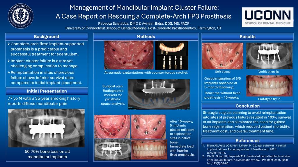 32. Management of Mandibular Implant Cluster Failure: A Case Report on Rescuing a Complete-Arch FP3 Prosthesis